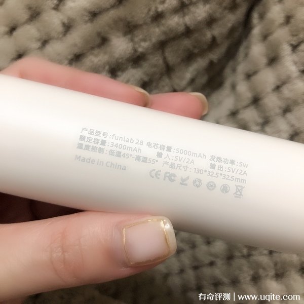 羽博暖手宝实物质感是真的不错,做工挺好的,比我想象中稍微长一点点,拿在手上很合适,适合我们女孩子。充电这个功能我现在也用不上,只能拿它到时候当个应急的吧,反正试了是没问题的,可以充进去。