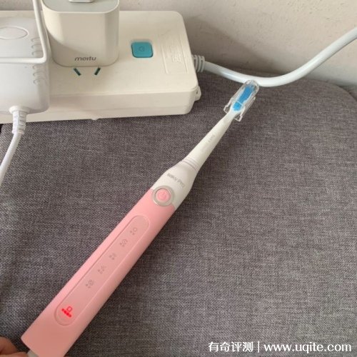 而且机身是有做防水处理的,平时刷牙也不用担心水渍会对它有影响。牙刷的底部有一个充电孔,充电的时候,会亮起红色指示灯,充满之后则会变成绿色,这样就可以清楚的了解充电进程。