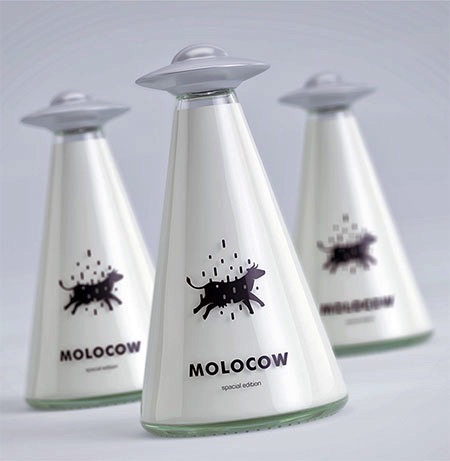 可怕的UFO把奶牛掳走了,就剩下香醇的牛奶啦!这款趣味牛奶瓶多么充满想象力,是否联想到了电影桥段呢。