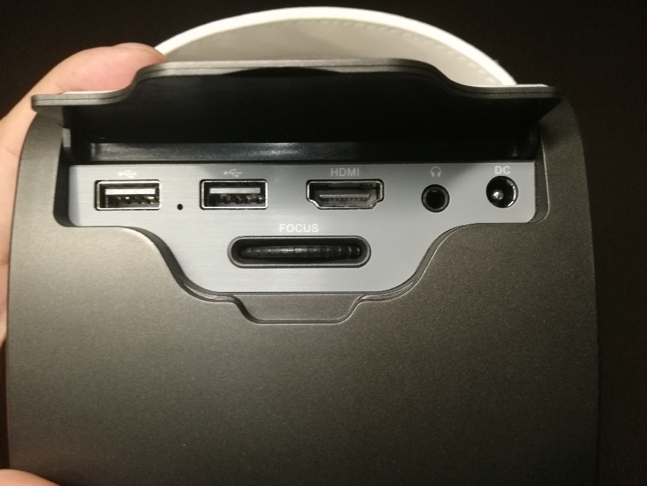 背后接口丰富,并配有防尘盖。一个hdmi接口方便了没有投屏软件时的连接,两个USB扩展大大增强了实用性,无论是扩展外接存储还是增加手柄等外设,一插解千愁,没有网络照样欣赏大片。耳机接孔,避免了深夜独自享受时候的尴尬。拨轮式的焦距调节更灵敏写就好了,有强迫症的人往往会为了一丁点清晰度来回折腾。