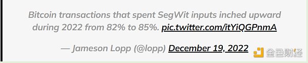 SegWit(隔离见证)的采用已经达到饱和状态;预计逐渐接近100%的采用将需要很多年。