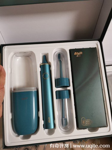 这款拜尔电动牙刷有墨绿色和黑色两种颜色可选,我则是入手的墨绿色的这款,感觉更高级一些。电动牙刷到手后是礼盒的包装,看着就还蛮不错的,颜值很高,感觉用来送人应该也挺不错。