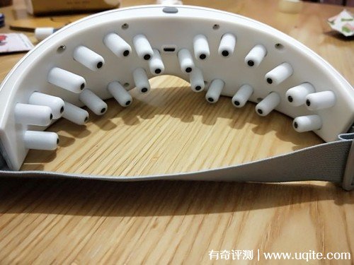 这款金禧康护眼仪刚拿到说的时候,感觉样式也是挺新颖的,与一般的护眼仪不同的是,它的内侧是那种凸起的清晰可见的硅胶按摩凸点,每一个按摩凸点的中间都有磁石,因为是硅胶的材质,所以非常的柔软,再加上它的松紧带是可以调节的,对于不同头围的人来说,都是可以使用的。