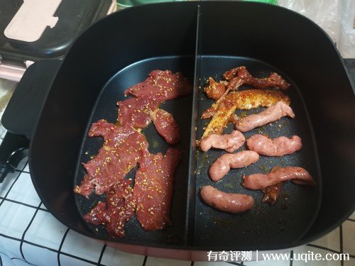 山本电火锅除了炖煮火锅以外,它还可以用来烤肉、摊饼和煎蛋,虽然中间有一个隔断,但也不妨碍使用,所以实用性就还挺多的。
